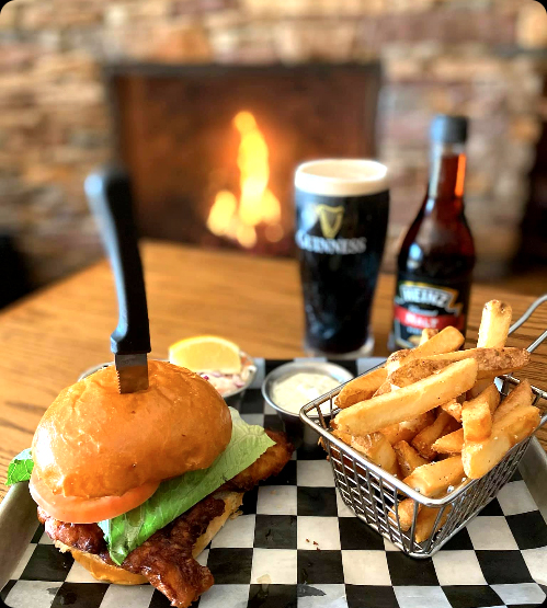 With Irish selections of Bangers and Mashed, Shepherd’s Pie, and Irish Boxty’s (Boxty’s are the Irish version of Potato Pancakes), and American cuisine including half pound burgers, variety of sandwiches, salads and great appetizers to share with friends.